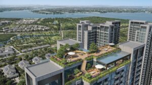 Điểm nhấn nổi bật là “Sky Ring – Cầu cảnh quan liên toà” tại tầng 3 không chỉ là lối đi kết nối các toà, mà còn là không gian trải nghiệm xanh mát giữa lòng dự án. Cư dân có thể thảnh thơi dạo bước , tận hưởng làn gió trong lành, ánh sáng chan hoà và tầm nhìn rộng mở ra khuân viên nội khu hoặc cảnh quan xung quanh. Đây cũng là nơi lý tưởng để gặp gỡ, kết nối cộng đồng, tập yoga, thiền hay đơn giản là tận hưỡng những phút giây yên bình giữa thiên nhiên.