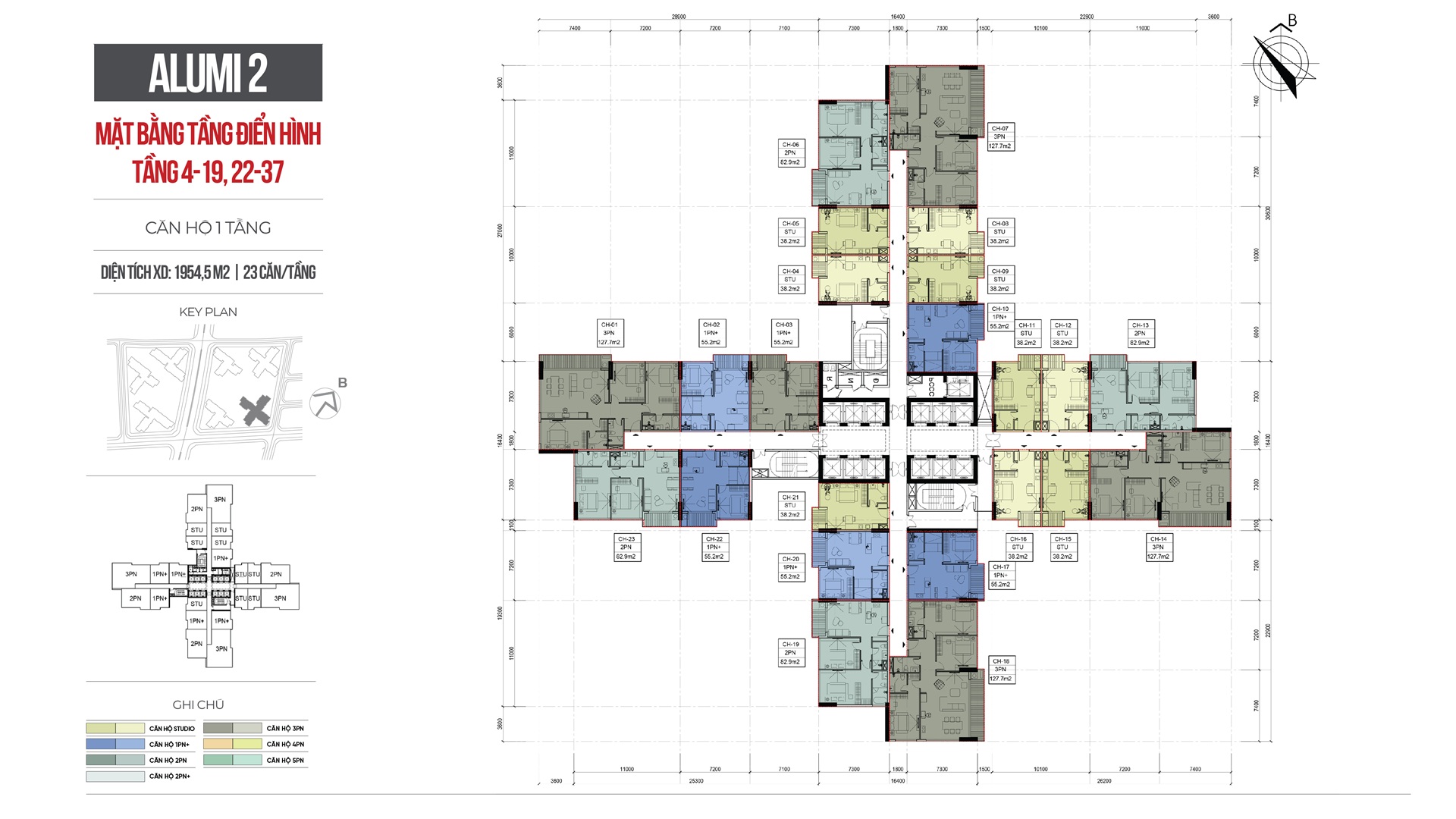 | Loại hình sản phẩm: | Studio, 1PN+, 2PN, 3PN, Duplex, Penhouse |