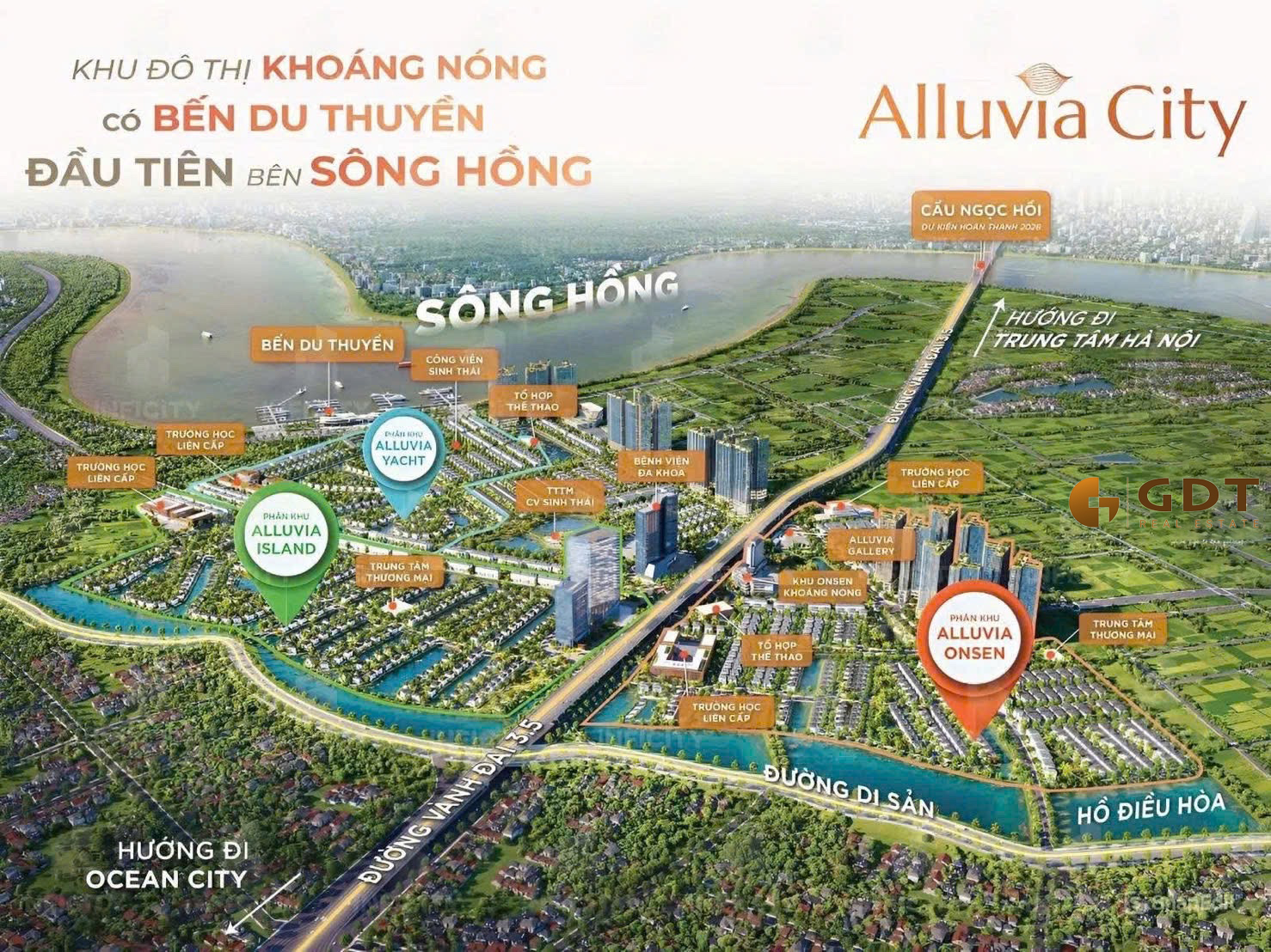 Alumi – Tổ hợp căn hộ Compound resort giữa mạnh khoáng nóng duy nhất bên sông Hồng. 100% khối tháp đón dòng khí lưu chuyển. Hưởng vi khí hậu mát lành quanh năm. Gió từ sông Hồng thổi qua phố và đi qua từng ô cửa sổ – Nhiệt độ từ Alumi luôn mát mẻ và thấp hơn vùng lõi trung tâm 3-5 độ C vào mùa hè.